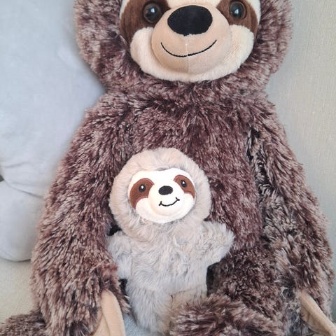 Äitiyspakkauksen laiskiainen pehmolelu. Hyväkuntoinen