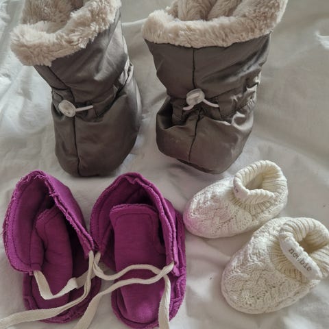 Kahdet pienet vauvakoon tossukat. Vaaleat aivan pienet, siniset hieman isommat.
