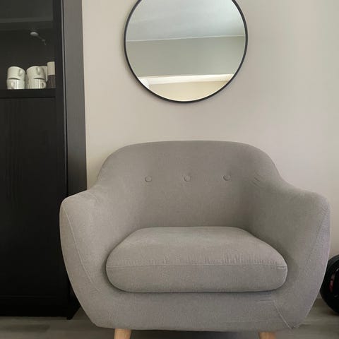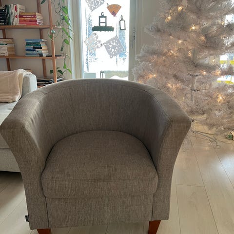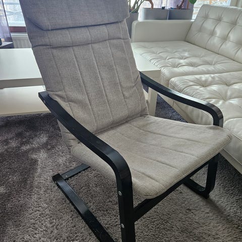IKEA nojatuoli harmaa kangas istuinosa puurunko
