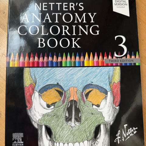 Myydään käyttämätön ja erinomaisessa kunnossa oleva anatomian oppikirja, joka auttaa oppimaan kehon rakenteita värittämällä. Tämä on klassikkopainos, jota on myyty miljoonia, ja se sisältää tarkat, käsin piirretyt kuvat eri kehon järjestelmistä (kuten kallon luista, lihaksista jne.).