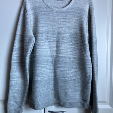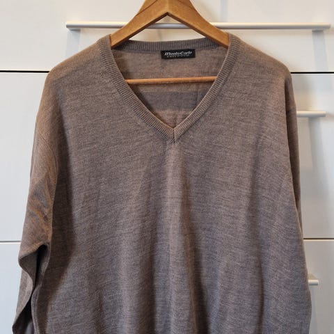 Monte Carlo miesten neule, väri harmaa, koko 54. Valmistettu villan ja polyakryylin sekoituksesta (50 % villaa, 50 % polyakryyliä).