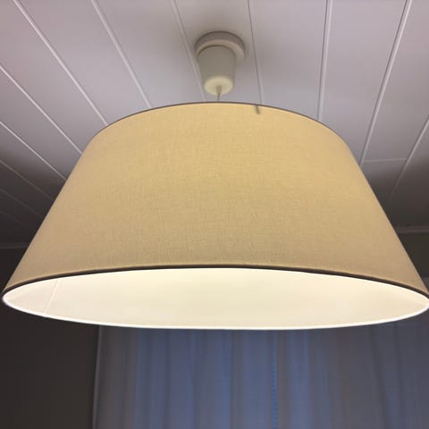 Ikean valkoinen NYMÖ-lampunvarjostin.