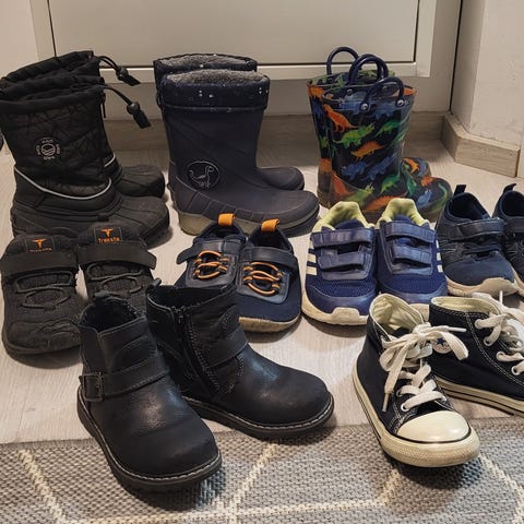 Mukana useampi pari (lenkkarit, sandaalit, välikausikengät).