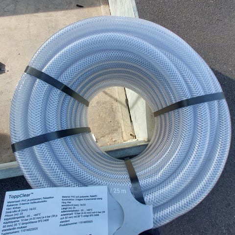 Noin vuoden vanha puutarhaletkukela. Pituus 20m. Hinta uutena puuilossa 60€. Tämä toimii täydellisesti ja kelaa itsensän automaattisesti takaisin.