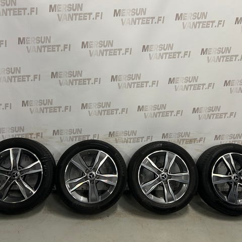 Gordiantin 225/50R17 kesärenkaat vanteilla joissa mukana rengaspaineanturit. Vanteet 17x8 ET 46, joissakin kohti skraaduja. Ollut kyseisessä w205 mersussa.