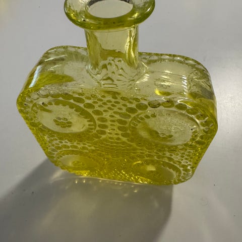 Grapponia maljakko keltainen nanny still jossa on keltainen väri ja koristeena pisaramainen kuviollinen pinta. Maljakko on valmistettu lasista.