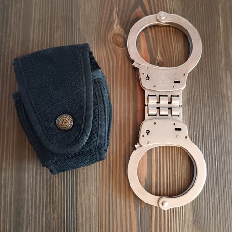 Peerless handcuff co springfield ma-käsiraudat ja yksi avain. Made in korea. Näitä mm jenkkipoliisit käyttää. Tästä joko käyttöön tai urbaaniin kotiin sisustuselementiksi.
