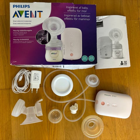 Philips käsikäyttöinen rintapumppu, mukana kaksi rintakumia ja kaksi maidonkerääjää.
