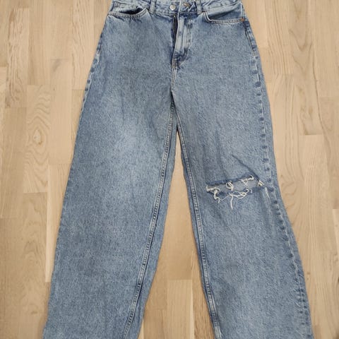 Siniset Bik Bok farkut koko W25x32 ja mustat farkkumaiset housut (IJeans), koko XS. Molemmissa vyötärö 31 cm päältä mitattuna.