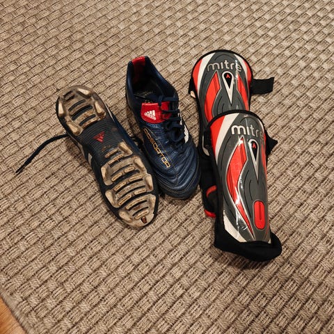 Käytetyt jalkapallokengät keltaiset 10 e ja valkoiset 20e