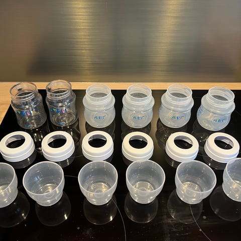 Philips Avent tuttipullo ja harjoittelumuki, eri kokoisia ja värisiä. Mukana on sininen harjoittelumuki, kaksi vaaleanpunaista tuttipulloa ja yksi sininen tuttipullo. Sopii vauvoille ja pienille lapsille.