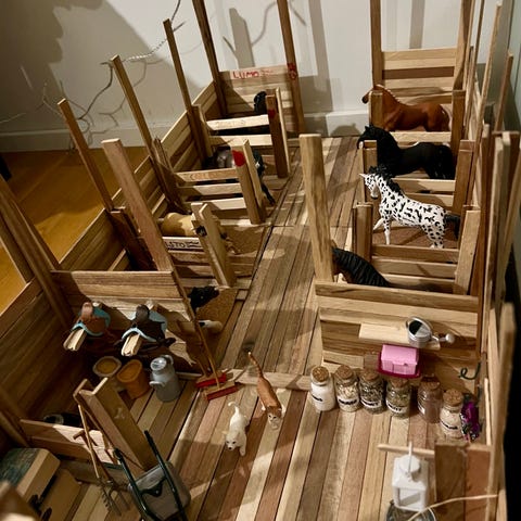 Myynnissä itse tehty uniikki hevos talli kahdelle hevoselle