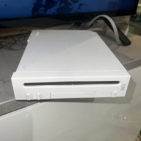 Nintendo Wii pelikonsoli sisältäen ohjaimet, sensoripalkin ja liitäntäkaapelit. Konsolia ei ole kokeiltu viimeksi pelattu 2 vuotta sitten.Konsoli on valkoinen ja soveltuu kotikäyttöön pelien pelaamiseen.