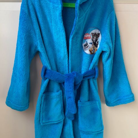 Hyväkuntoinen kylpytakki, jonka hupussa hahmo. Narun lisäksi myös nepparikiinnitys. Mmm.