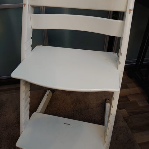 Myydään harmaa Stokke Tripp Trapp -tuoli. Harmaa käsittely on läpikuultava, ja puu näkyy läpi. Väri on alkuperäinen. Mukana on vauvan selkänoja, istuinosa ja tarjotin. Mukana on myös kahdet pehmusteet. Viidakkoaiheisissa on nestettä hylkivä pinta. Pupuaiheiset ovat Stokken omaa mallistoa. Kaikki on hyvässä kunnossa. Muovisen tarjottimen pinta on melko kulunut. Tuolissa on joitakin vähäisiä käytön jälkiä. Hinta 220 euroa. Vain nouto Tampereelta.