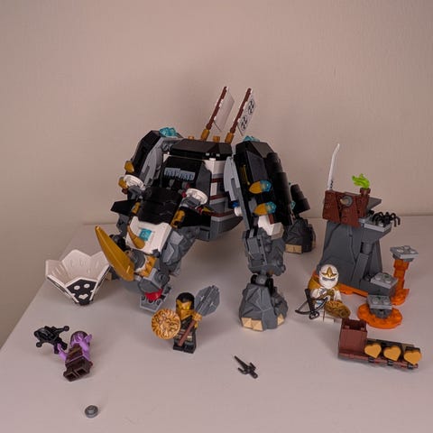 Hurja sarvikuonomainen mino-olento legoleikkeihin. Sisältää ohjeet ja kaikki hahmot. Alkuperäisen laatikon saa halutessa mukaan. Purettu pienempiin osiin seuraavaa rakentajaa varten.