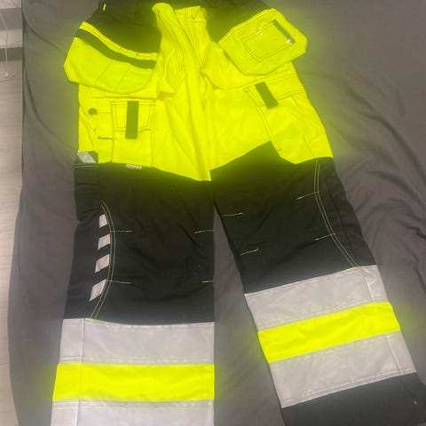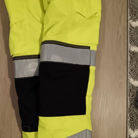 Dimex topatut talvityöhousut, henkselimalli, korkeampi vyötärö edessä ja takana, suojaa alaselän hyvin. Koko 54