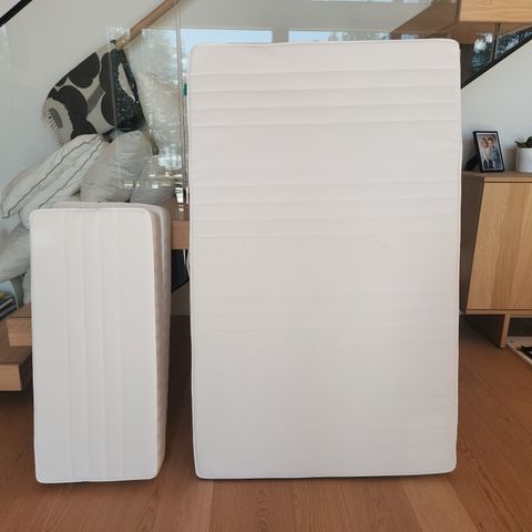 Yksi patja 45€, molemmat yhdessä 80€. (Uuden patjan hinta 85€.)