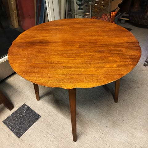 Kuvanmukainen pöytä 60-70 lukua. Teak viilu, reunoissa täysteak rumat. Ikäisekseen siisti ja hyvä kuntoinen käytön jälkiä. Nouto, toimitus sovittavissa.