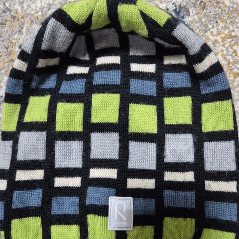 Reiman vihreä pipo 50cm. Takana vähän nukkaa. Tuulensuojukset korvilla.