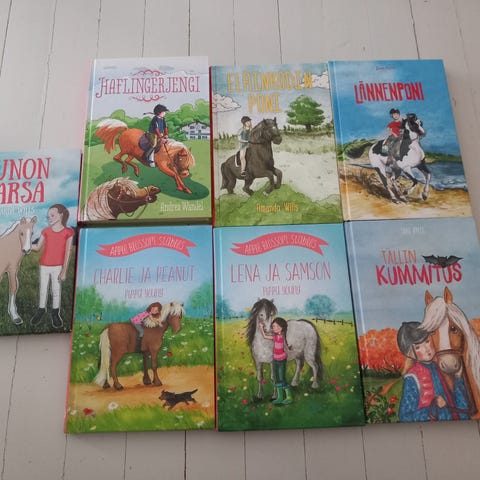 2 Stycken häst böcker som är i bra skick men lite förstörda men typ bara på utsidan alla sidor finns i dem och dom heter HEMMA NU IGEN Och den andra heter Windy och i den så finns två sagor ena heter windys vilda hjord och den andra heter i windys spår