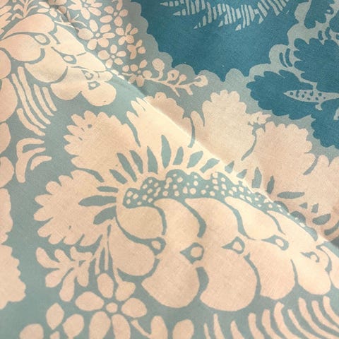 Kaksi palaa 100% puuvillakankaasta Maija Isolan Lehtimaja-kuosilla. Paloja on käytetty tauluina. Kankaat on pesty mutta toisen palan yhdessä kulmassa on muutama nitojan niiteistä tullut pieni ruostetahra, huomioitu hinnassa.Katso kuva. Palat myydään yhdessä.