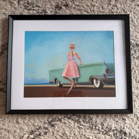 Myydään pastelliliiduilla maalattu Kaj Stenvalin taulu ”Vapaastihengittävä”. Kehyksen koko 40c50cm.