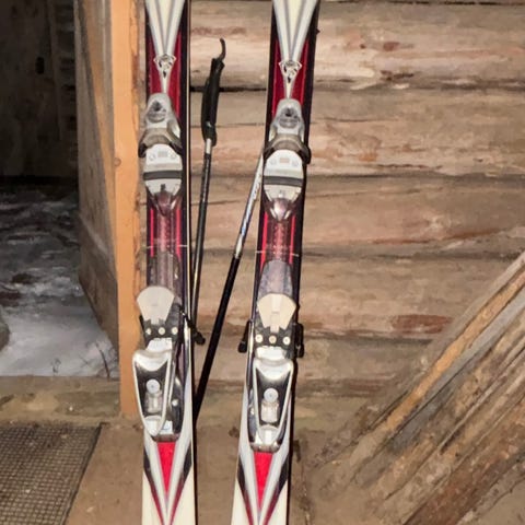 Rossignol X10X suksipaketti sisältäen sukset (100cm), sauvat (n. 85cm) ja monot (sisäpituus n. 20,5cm). Seuraavalle pienelle laskijalle ⛷️