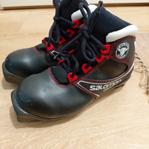 Salomon lasten hiihtomonot, koko 31,5 19.5cm sisämitta. Värit musta ja valkoinen. Sisäpinta pehmeää materiaalia. Soveltuvat lasten käyttöön.