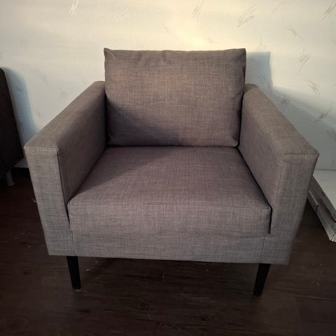 Siisti nojatuoli vähällä käytöllä. Tuolissa ”keinu” asento.