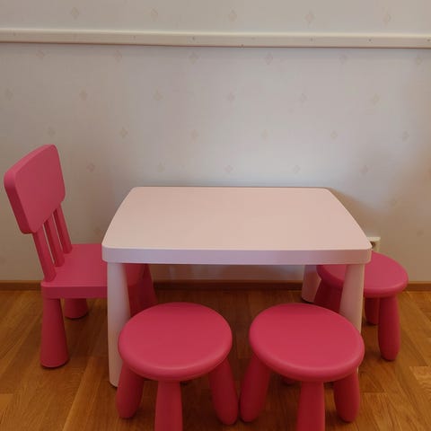 IKEA lasten pöytä ja tuoli vaaleanpunainen