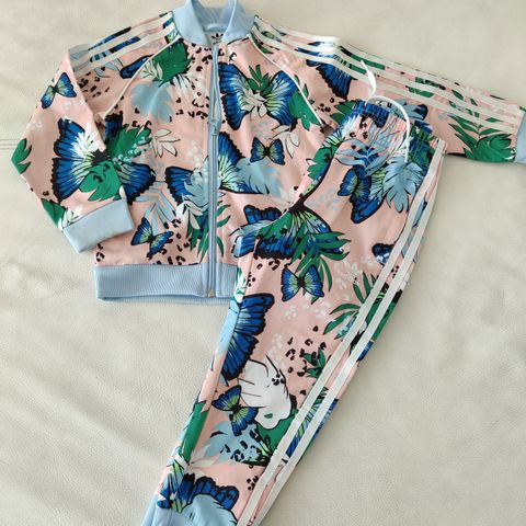 Adidas lasten unisex verryttelypuku, koko 116. Yhden lapsen käyttämä.