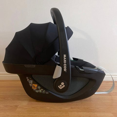 Maxi-Cosi Pebble 360 turvakaukalo mustassa värissä. Telakka ja koppa. Ei kolaroitu, säilytetty sisällä varastossa.