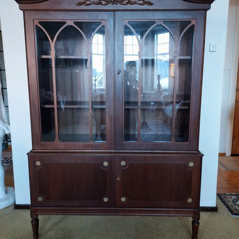 Myydään uudenveroinen tammiviiluinen vitriini, ei käytönjälkiä.