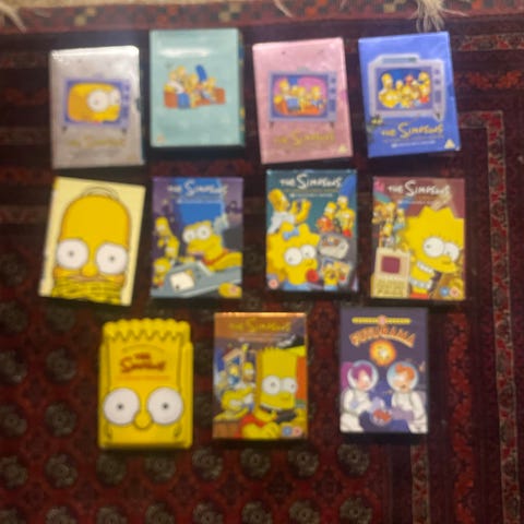 sisältää useita kausia ja erikoisjaksoja, the simpsons dvd levyt ykkös kaudesta kymppiin (paitsi kausi 5) + yksi futurama kausi 3.