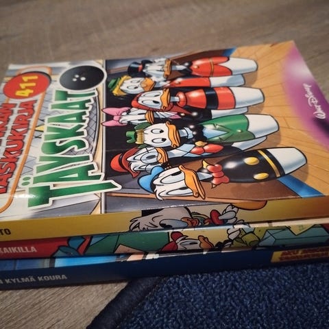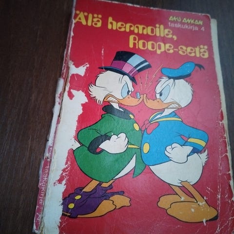 Aika aikaa nähnyt tuo toinen, liimaus halkeilee, kannessa pientä kulumaa ja kynän jälkeä löytyy kannesta. Toinen taas on jonkun verran kulunut kansista, mutta sivut ovat hyvät. Paitsi ainakin yksi tahra löytyy, joka on mennyt läpi muutaman sivun. Ja viimeinen sivu hiukan irti alhaalta. Päälle postikulut, jos postitan. Nouto käy myös.