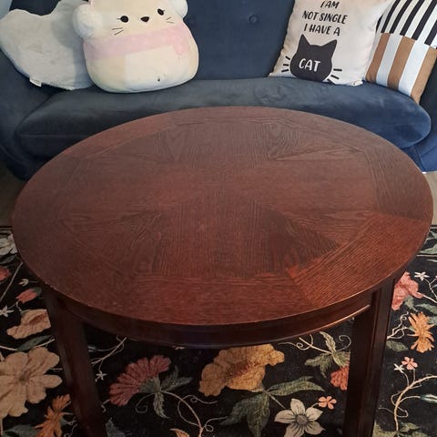 Täysipuinen olohuoneen pöytä. Koko 90 cm x 90 cm, korkeus 50 cm.