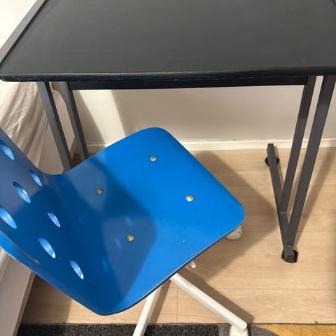 Seuraavalle siisti ja kaikin puolin hyväkuntoinen pöytä ja tuoli, joita voi säätää lapsen pituuden mukaan. Väri: valkoinen & harmaa.