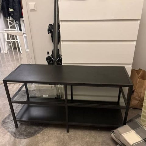Hienokuntoinen musta hylly.