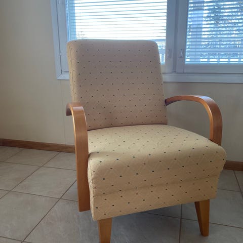Annetaan kuvien mukainen nahkainen mekanismituoli. Nouseva jalkatuki ja pyörivämalli.
