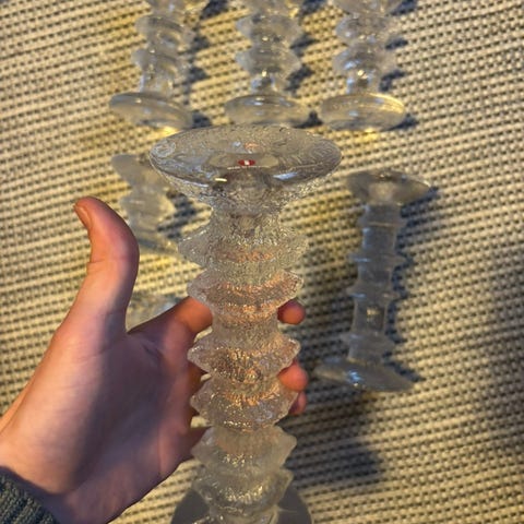 Iittala Festivo kynttilänjalat. Sarjaan kuuluu useita eri kokoisia kynttilänjalkoja, jotka on valmistettu kirkkaasta lasista. Kynttilänjalat soveltuvat koriste-esineiksi tai käytettäväksi kynttilöiden kanssa.
