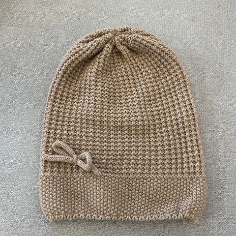 Pinnalta poistettu nukkaa. Rusetin alareuna leikattu aiemmin, saattaa käytössä langoittua, sen voi halutessaan vaihtaa myöhemmin.