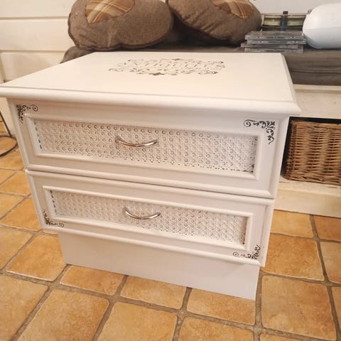 Yleisilmeeltään siisti lipasto. Muutamia käytönjälkiä löytyy. Ponnahdussalvat, laatikot eivät täysin ole linjassa keskenään. Nämä huomioitu hinnassa