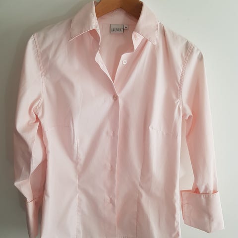 Uudenveroisessa kunnossa, kerran käytetty ja pesty. Vähän A-linjainen, kivat naiselliset laskokset. Nappi ehti irrota hihansuusta, huomioitu hinnassa. Koko S, joka vastaa Zoeylla 42-44 kokoa. Kai-kai n 59 cm ja olka-helma 63 cm.