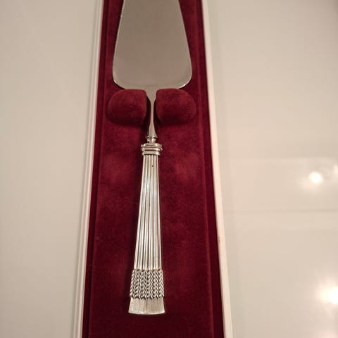 Hopeinen kakkulapio Chippendale 55 euroa ja kakkuhaarukka Chippendale 30 euroa. Ruusukuvioinen sekä kukkakuvioinen hopeiset kakkuhaarukat yhteensä 30 euroa.