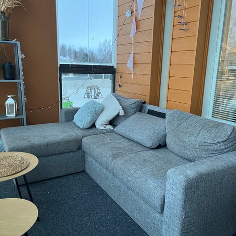 Annetaan sohva. Leveys 247, syvyys 105, divaaniosa 140