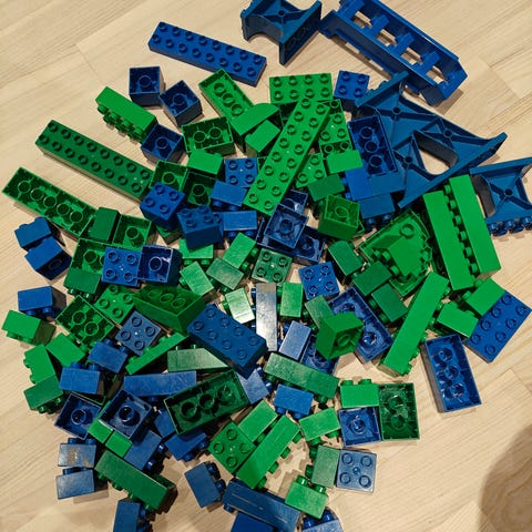 Ikean 6l pussin verran punaisia erilaisia Lego Duploja.