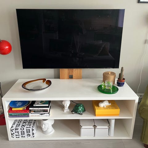 Muuten hyvässä kunnossa oleva tv-taso, mutta pinnassa hieman kulumaa.