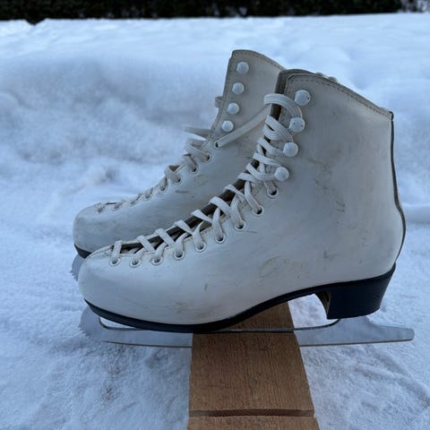Hyväkuntoiset Risport-taitoluistimet, koko 38. Terät MK, terien koko 9 1/3”, valmistettu Sheffieldissä, Englannissa. Teroitettu aina terän vaatimalla tavalla.