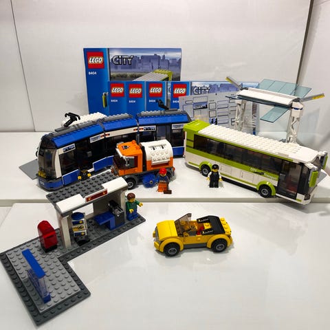 Mukana kaikenlaista aina ratikasta pizzakuskiin! On mm.hinausauto, raitiovaunu pysäkkinsä kanssa, helikopteri ja automekaanikko!